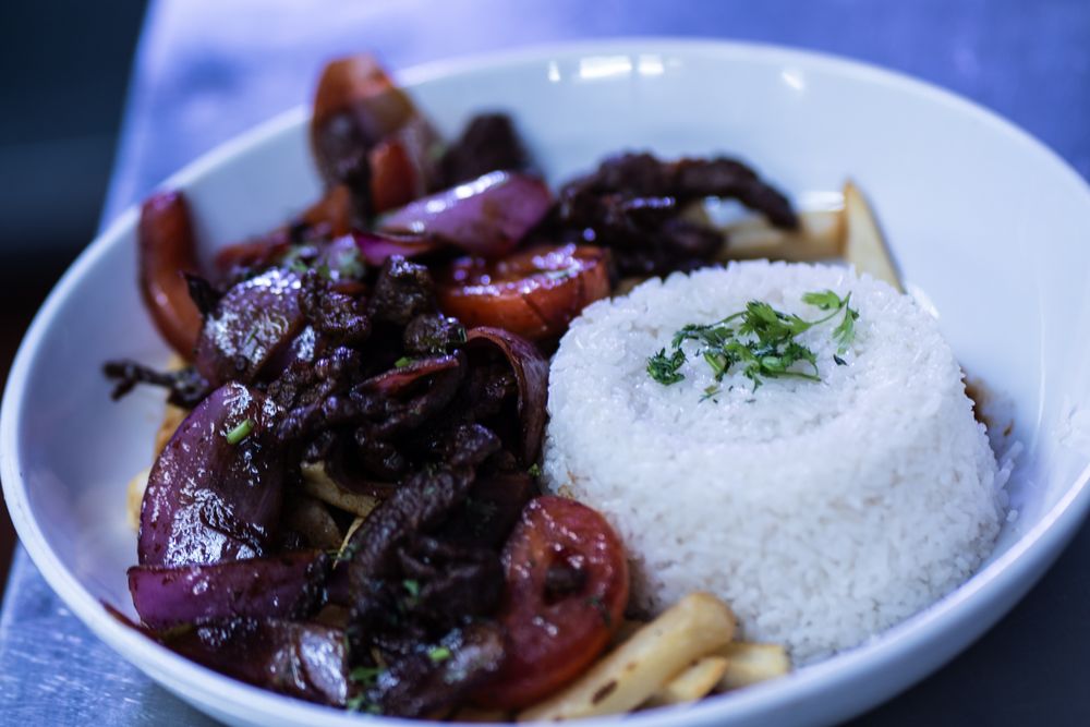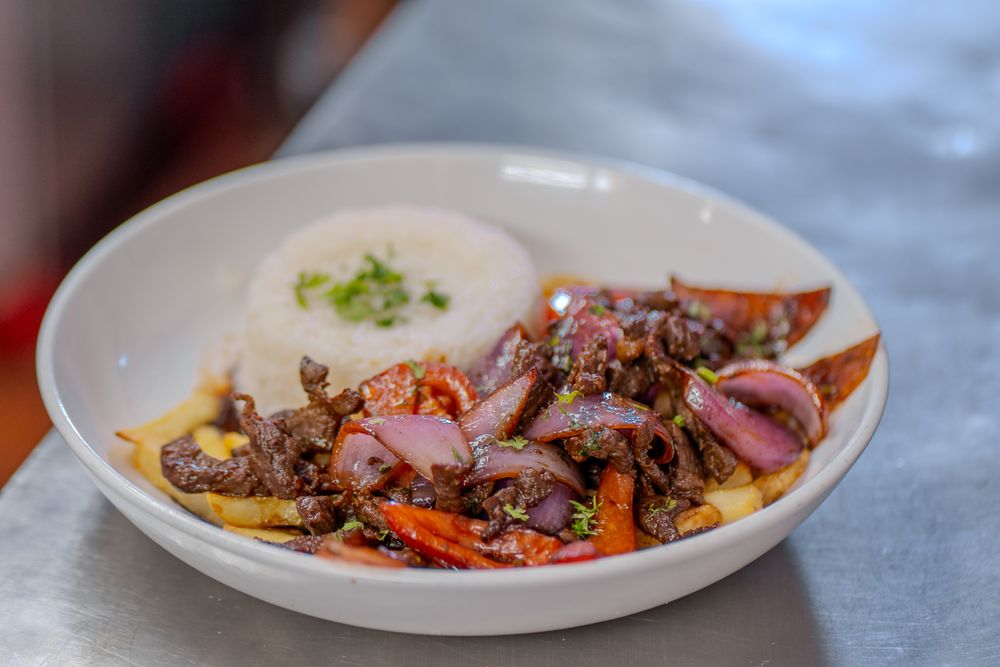 Peruvian chicken stir-fry mixed with onions, tomatoes & crispy French fries. Served with a side of white rice.