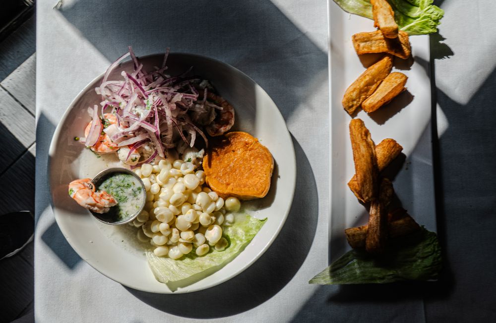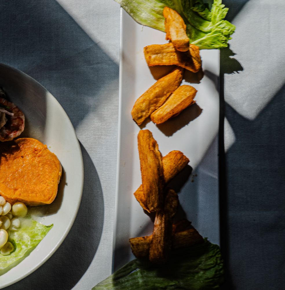 Crispy fried fish, fried cassava & Peruvian creole onion salad.